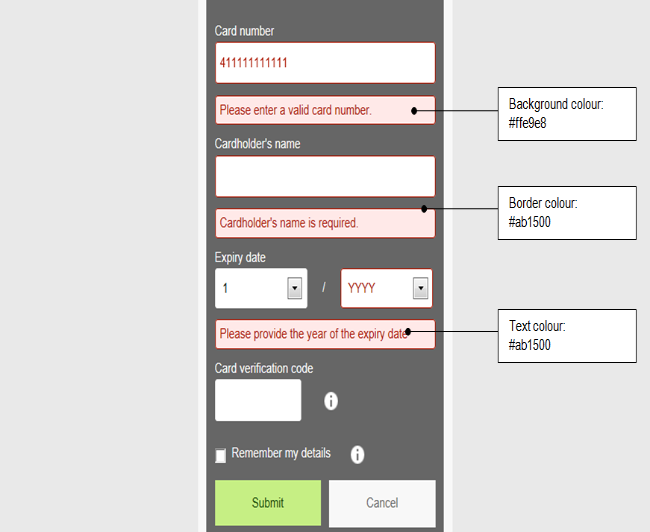 Un messaggio di errore che compare quando viene immesso per sbaglio un CVC errato. |